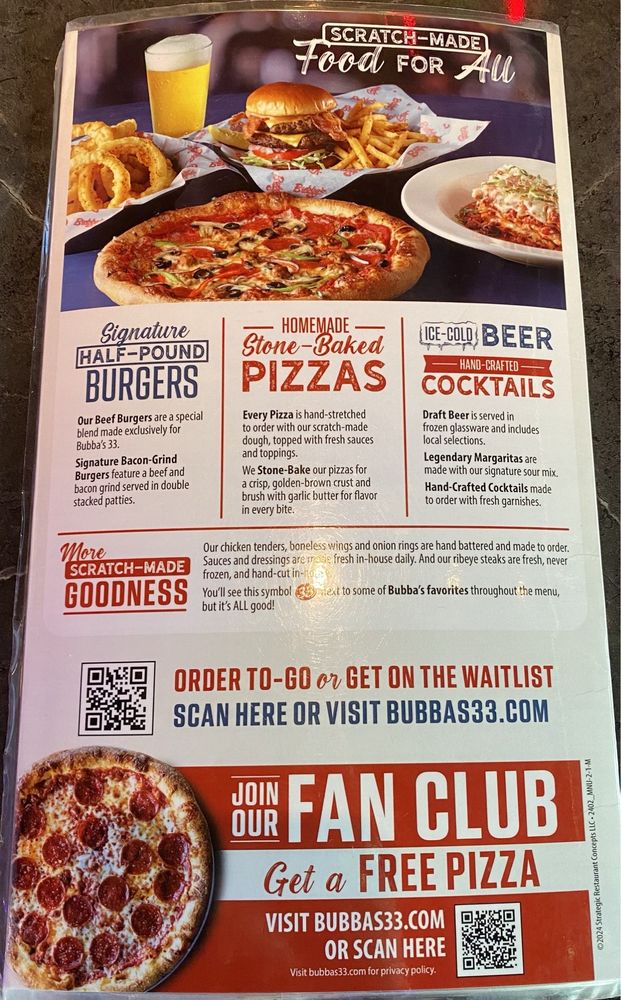 Bubba's 33 Katy Menu (Update 2025)